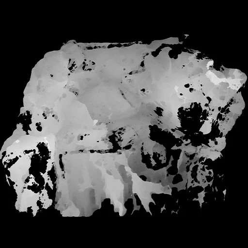 I mapped the collision points of my fluid simulation and stored persistently every point being touched by a fluid. With this information stored frame by frame, I iterate it through a function that paints each frame as FrameAmount / 1.0 and adds to the red channel.